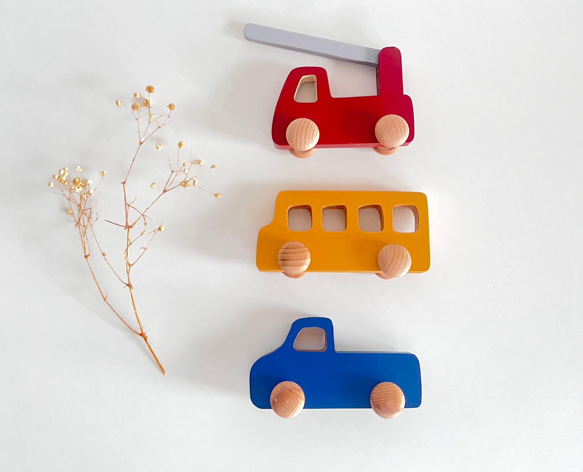 Everyday heroes, ready to roll! The Birch & Bug Busy Wheels Set brings together a firetruck, school bus, and truck—crafted from natural wood and finished with child-safe, non-toxic paints. With chunky shapes and smooth-rolling wheels, they’re perfect for toddlers to push, grasp, and play, sparking hours of imaginative adventures from school runs to rescue missions.