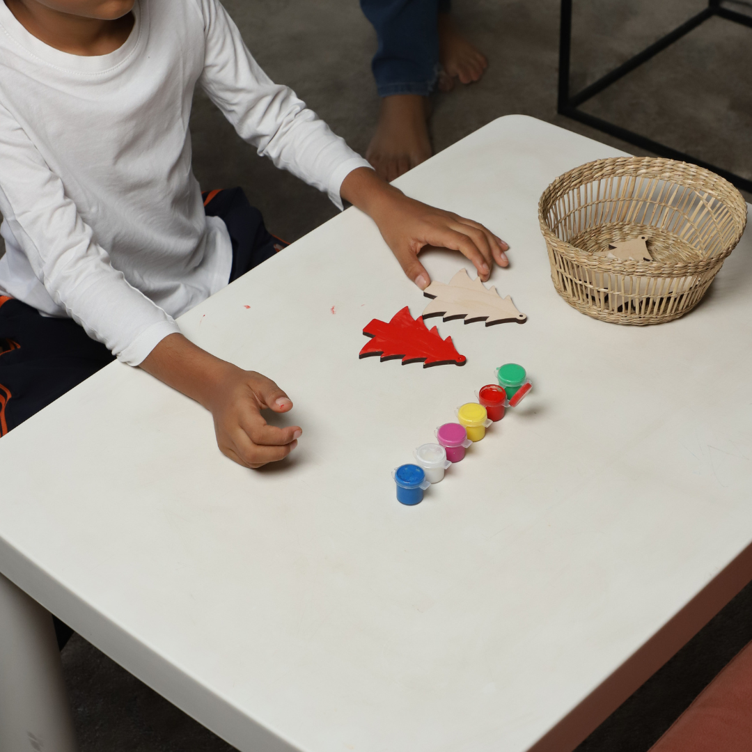 Each set includes 4 wooden Christmas trees, a set of festive paints, and a paintbrush, thoughtfully packed to inspire endless creativity. Made from natural wood and smooth to the touch, these ornaments are ready to be transformed into colorful keepsakes that sparkle with your child’s imagination.