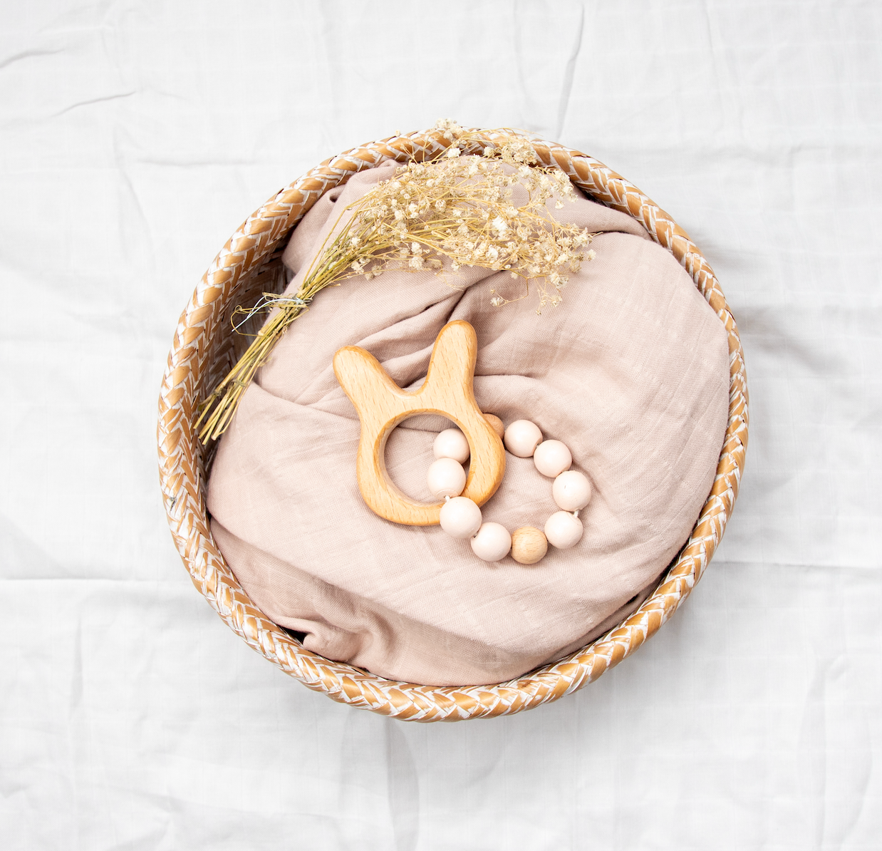 Thoughtfully crafted for tiny hands and tender gums, our Bunny Teether is made from solid beechwood and features a ring of smooth beechwood beads, hand-painted in non-toxic, baby-safe colours.