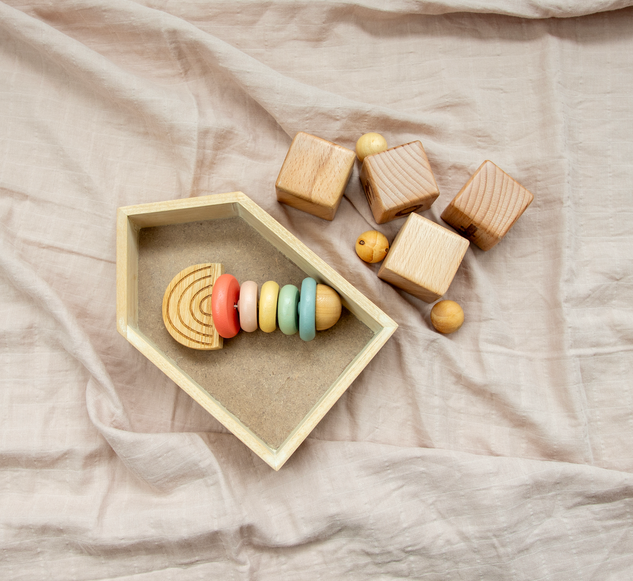 Our Pastel Rainbow Teether and Rattle is a celebration of gentle sound and soft colour. Crafted from smooth ivorywood and hand-painted in calming pastel tones, it’s designed to stimulate your baby’s senses while supporting early development.