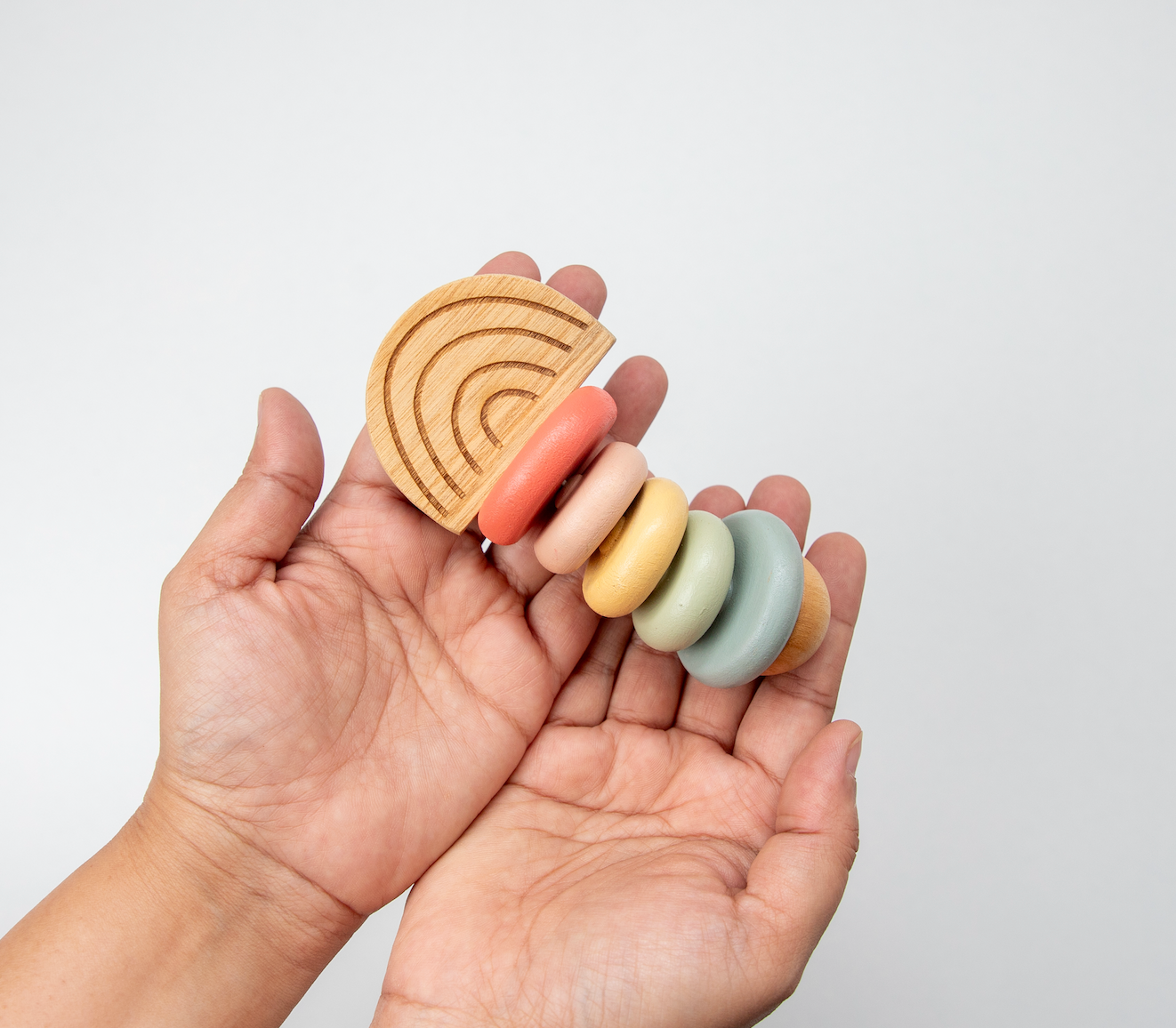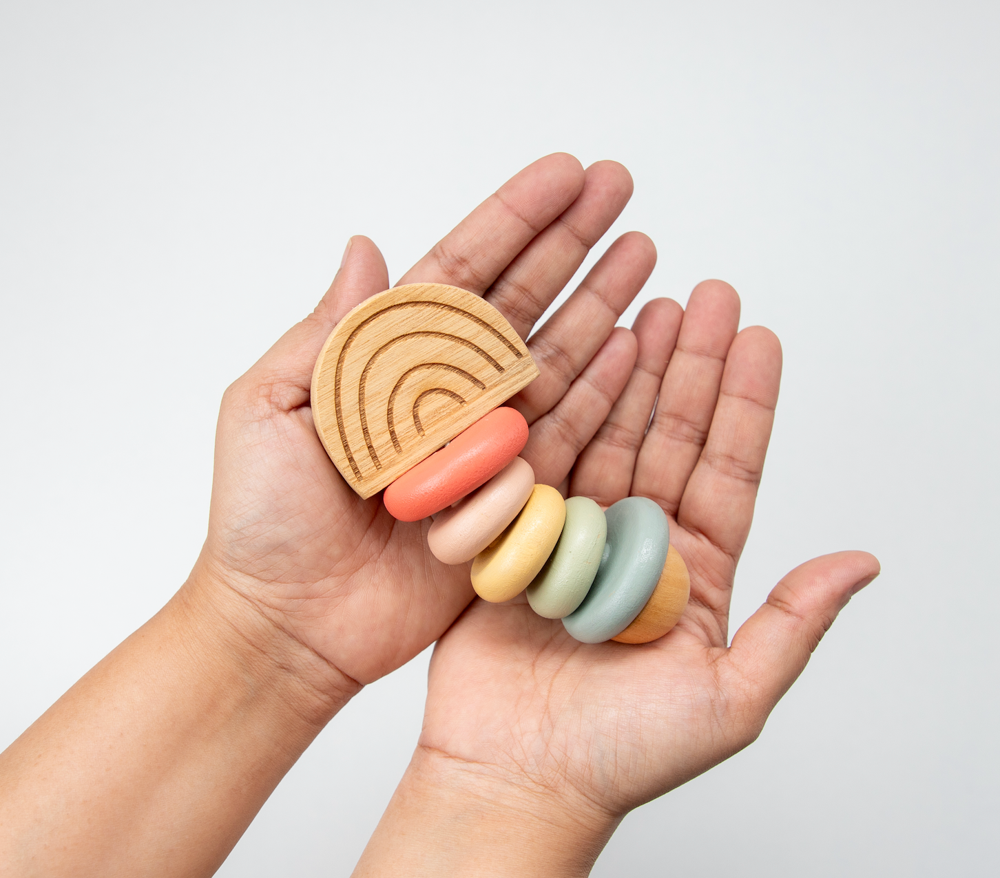 The unique rainbow-shaped topper adds charm and grip, while the rounded rings create a delicate rattle when shaken. Lightweight, safe, and just the right size for tiny hands to explore and enjoy.